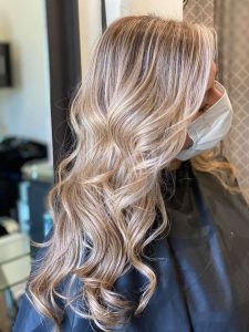 Balayage, dimensional blondes, grey blending, and custom color—designed for effortless grow-out.